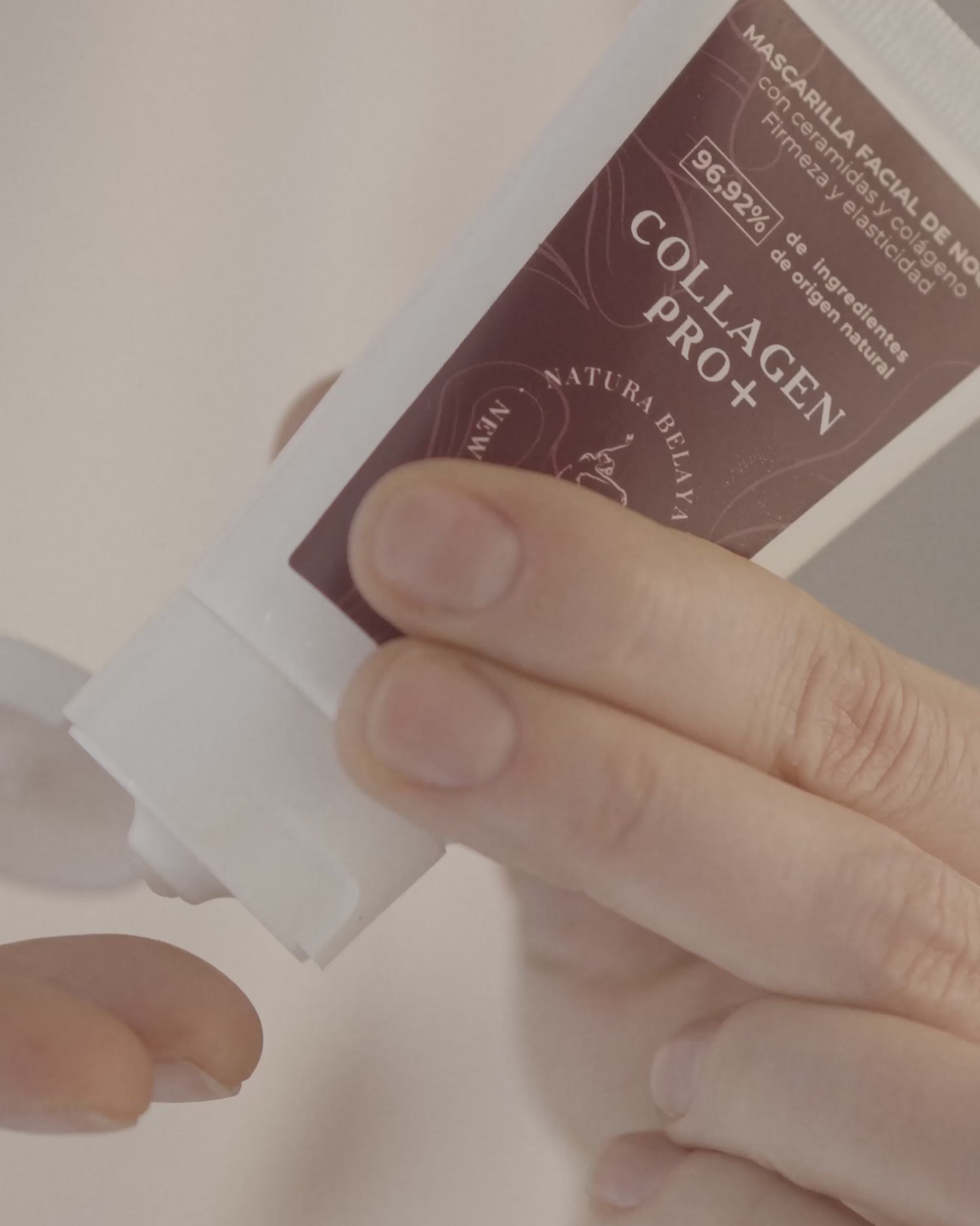 - Aplicar una dosis de Mascarilla facial Collagen PRO + y déjala actuar durante la noche.
